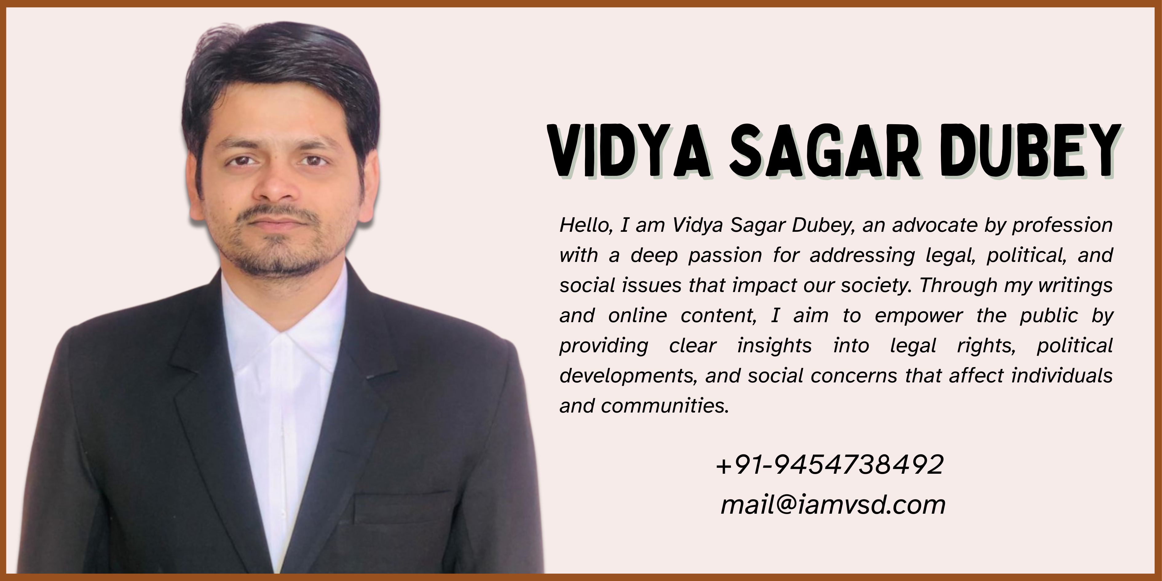 I am Vidya Sagar Dubey, an advocate by profession with a deep passion for addressing legal, political, and social issues that impact our society.